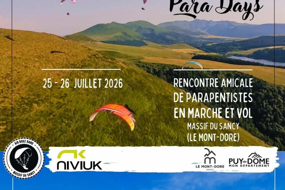 Rencontre amicale de marche et vol organisée par le club Air Bouz Band, ouverte à tout pilote autonome licencié FFVL équipé obligatoirement d’un parachute de… Lire la suite »Sancy Paradays 2026