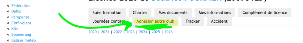 Depuis votre intranet FFVL et sur votre profil licencié, cliquez sur le bouton « Adhésion autre club »